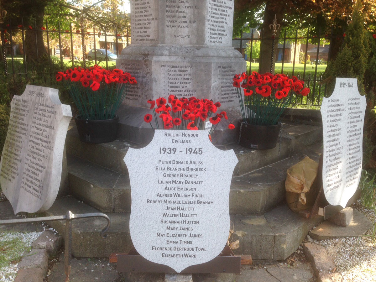 On 12th October 1952 The British Legion invited Major James Heathcote-Drummond-Willoughby, Earl of Ancaster, to unveil two new shields, a memorial to those who gave their lives in World War II listing the names of the 77 World War II military casualties. During the ceremony the memorial was re-dedicated by the Rev. Ward and Rev. Gibson. The shields were also made by W.S. Harrison, (who made the original War Memorial), from Hopton Wood limestone.