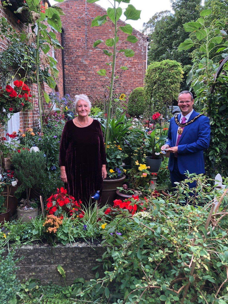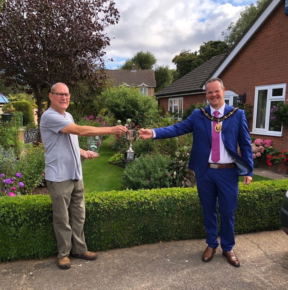 Following the judging of the Lovely Louth 2020 floral competition, organised every year by Louth Town Council, the Mayor of Louth, Councillor Darren Hobson, and the Chair of the Floral Working Group Councillor Sue Crew visited each of the winners in their gardens and presented the awards personally.