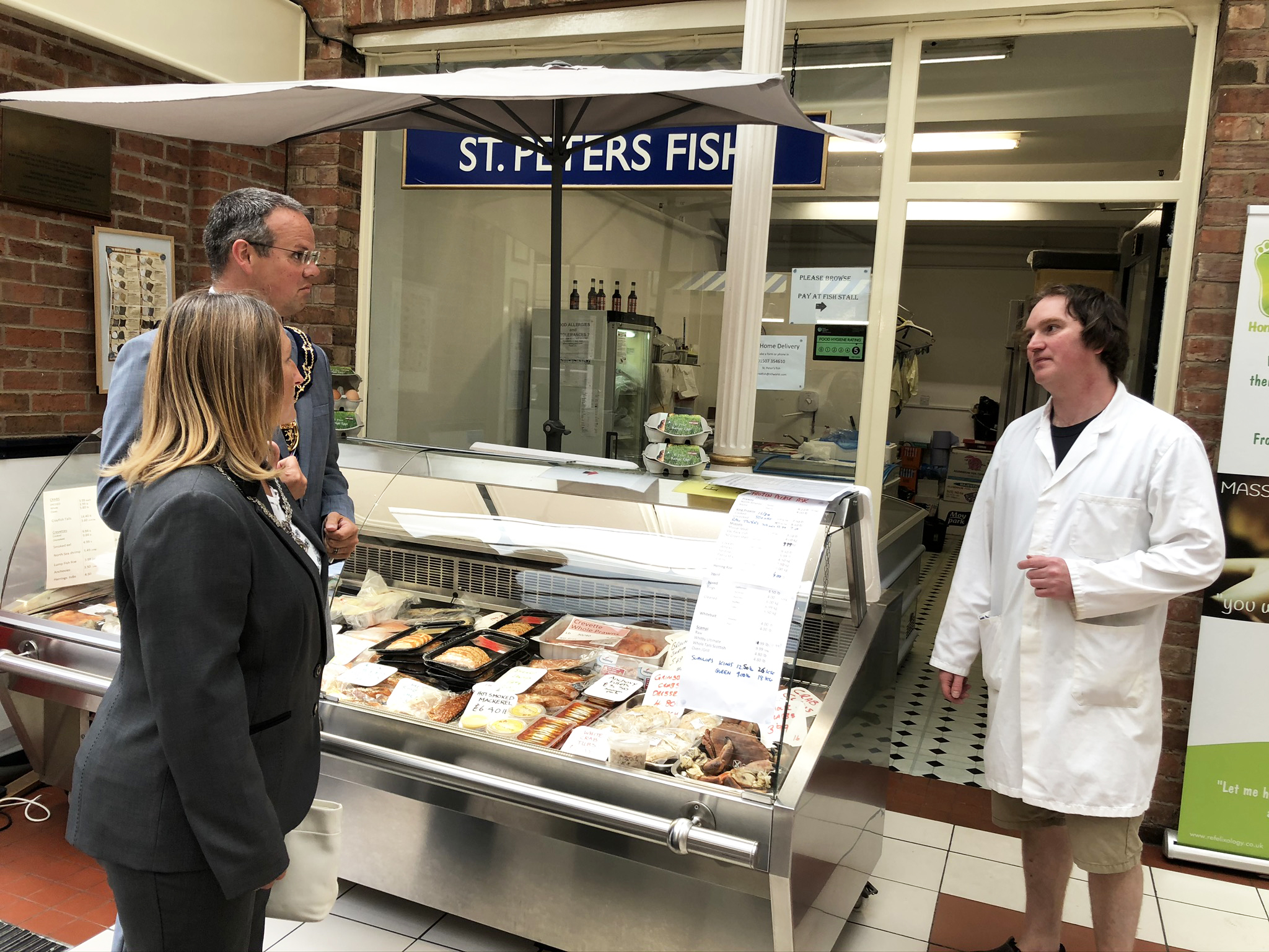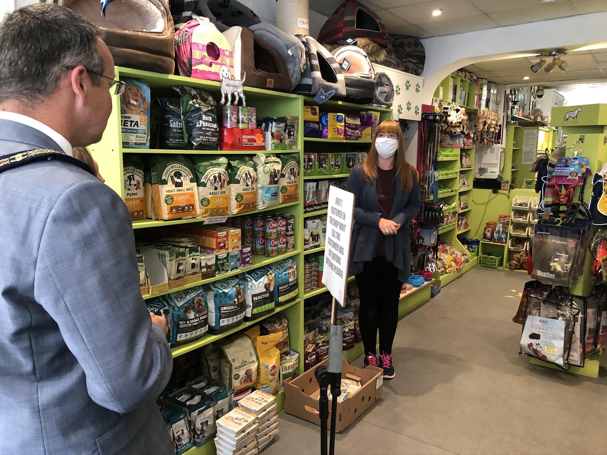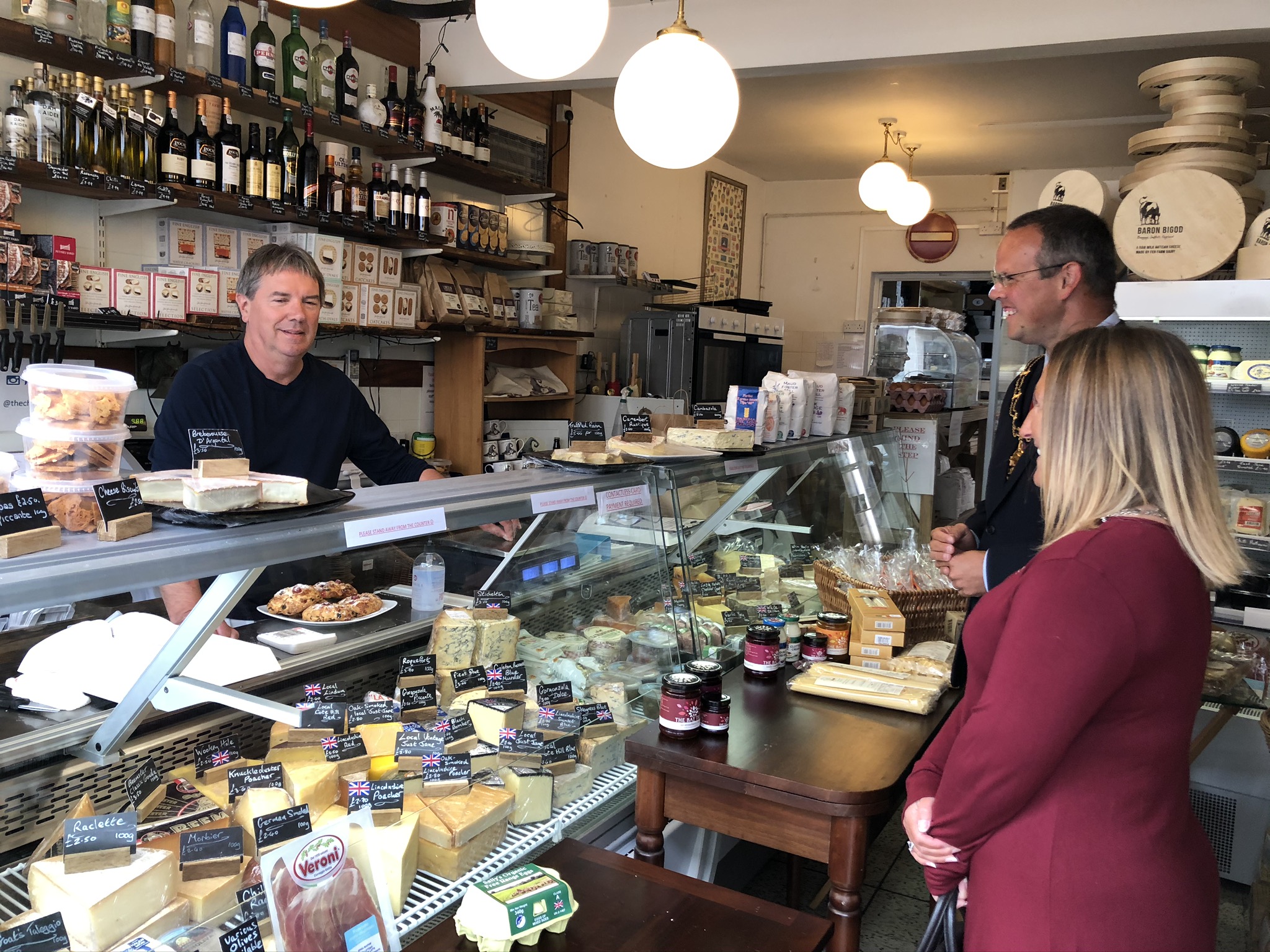 Last week the Mayor and Mayoress of Louth, Councillor Darren and Mrs. Sarah-Jayne Hobson, visited some of the shops, businesses and voluntary groups in Louth to thank them for their hard work and dedication through the lockdown period. During the walk-about they were able to discuss with local businesses the impact that the lockdown was having on them, and their concerns for the coming months.